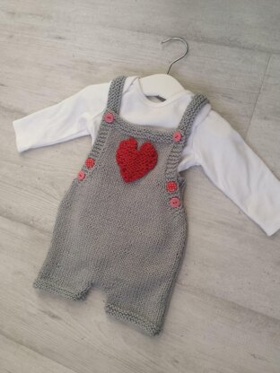 These baby bib shorts are both practical and adorable with a heart motif which is worked separately and sewn on, so no need for intarsia work. Worked in aran weight cotton, the bib shorts fasten with buttons at shoulder straps and side waistband. Can be worn over a long sleeve T-shirt and tights on cold days and just a vest on warmer days. We use grey and red, a classic colour combination or can be worked in any colour combination of your choice, with or without the heart.