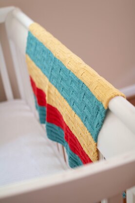 Skills needed for the blanket are knit, purl and adding a new color. The baby blanket was worked using Classic Elite Yarns/Summer Set yarn. However, any baby-soft worsted weight yarn will do. Berroco Modern Cotton has lots of fantastic colors to choose from.