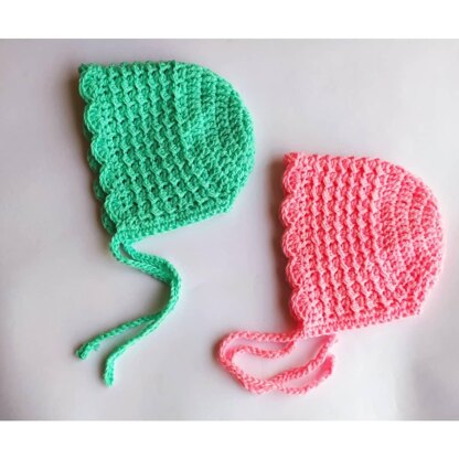 This baby bonnet pattern contains instructions for sizes 0-6 months and 6-12 months. It is beginner friendly as it makes use of simple crochet stitches like Dc, SC, Slip stitch and Hdc.