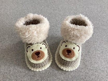 Adorable Baby Teddy Booties - Unisex - This Pattern Makes 3 Sizes Made In One Piece On Two Straight Needles.