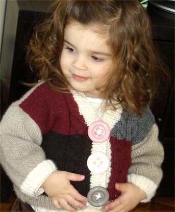 This Baby Button Up sweater pattern is knit in different color blocks with one cable up each side to add some fun to a nice traditional look. Pattern fits ages 6-24 months. Worsted weight yarn required. Needle size US #8. You can add some fantastic oversized buttons for a funky look or small delicate for a classic style. Great for a boy or girl.
