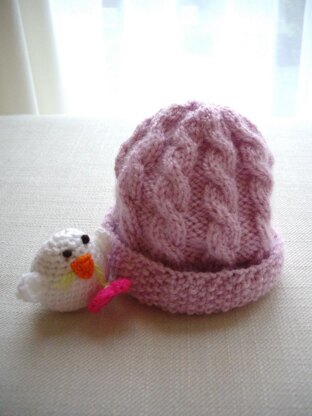 Perfect for chilly spring days, this lovely little cabled baby hat is perfect for keeping your little one warm and is knitted using Double Knitting/Light worsted weight yarn.