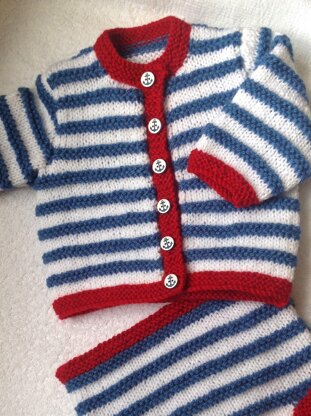 I have added a size to this pattern and knitted it again in red, white and blue for a baby boy.