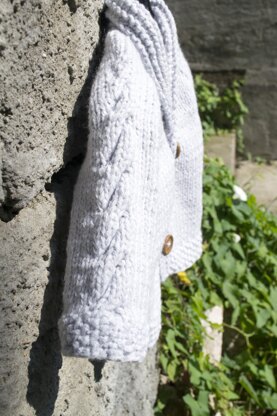 The garter stitch collar and button band are shaped with short rows and are picked up and worked after the body is knitted.