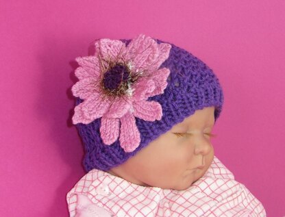 This is my Baby Chunky Lacey Flower Skullcap knitting pattern. This beautiful hat is quick and easy to make. The hat can be made in any chunky yarn of your choice and the lacey pattern is incredibly simple. The flower can be made with small amounts of leftovers in your stash. The knitting pattern provides full instructions with lots of step by step photos for 3 sizes S (newborn), M (baby) & L (toddler).