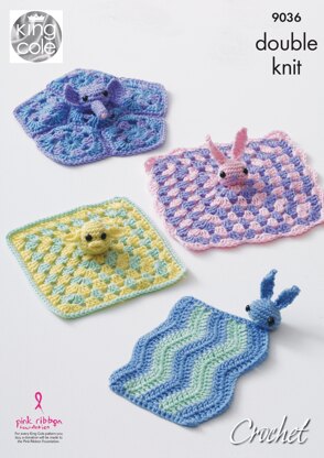 Baby Comfort Blankets in King Cole Cherished DK - 9036pdf - Downloadable PDF est un modèle de Crochet Intermédiaire par King Cole, disponible au format PDF téléchargeable et comprend des instructions en Anglais. Super amusant à réaliser, ce modèle pourrait être votre prochaine œuvre d'art !