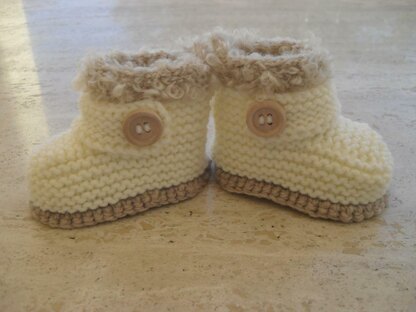 Knitting Pattern Baby Booties Made on Two Needles Makes Three Sizes 0 to 3, 3 to 6 and 6 to 9 months.