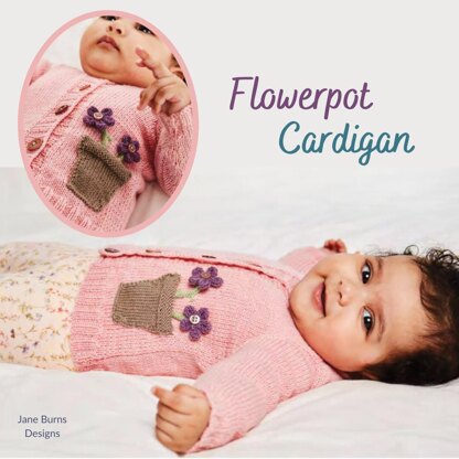 The Flowerpot Pocket is knit separately and sewn on to form the Pocket and the flowers are attached to bring this little cardigan to life.