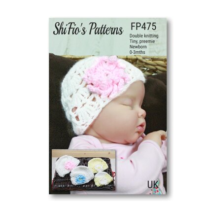 Baby Flowery Beanie in 4 sizes Crochet Pattern #475