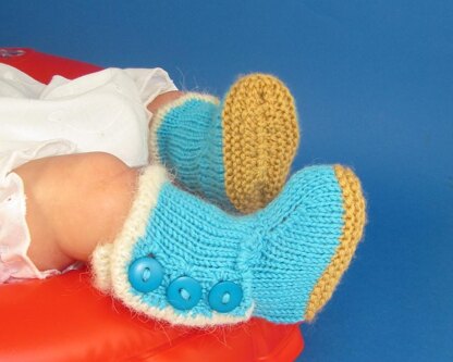 This is my Baby Fur Trim 3 Button Booties knitting pattern. These fabulous booties are quick and easy to make. They are worked flat and are knitted entirely in one piece. The knitting pattern provides full instructions for 4 sizes, XS (preemie - tiny baby), S ( newborn - 3 months), M (3-6 months) and L (6 - 9 months).There are also lots of photos to help you along the way.