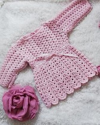 This pattern is for a cute baby girl dress crocheted with the beautifully soft Debbie Bliss Baby Cashmerino. It can be worn as a pretty dress or a christening gown. There are 2 sizes given in pattern 0-3 months and 3-6 months. Pattern is written in UK.