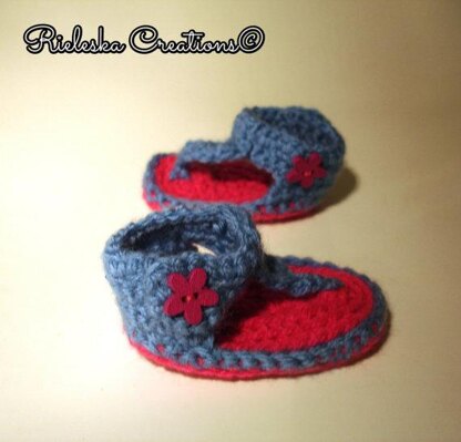 PDF Crochet pattern baby girl sandals /size 0-3 monthsBe altered for an older child changing the hook size.Price is for the PATTERN only, not the finished product.There is no shipping charge for this item, as it is a PDF file and will be sent almost direct of payment. If you don't receive it within 24 hours, please, contact me.All patterns are written in standard American terms.You can always contact me if you have any problems with the pattern. These patterns are copyright Rieleska Creations ©.Do not copy, sell or distribute my patterns.You are welcome to sell what you make using my patterns.