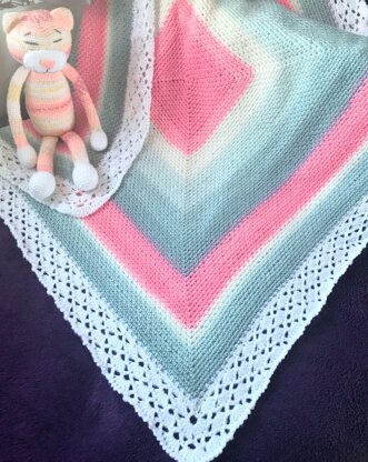 Size: approximate 87 x 87 cm (34” x 34") with edging Level: Intermediate Materials used: For blanket - 2/150g balls (each approx 540m/590 yards ) of Lion Brand Mandala in “Unicorn”
