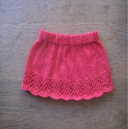 A cute knee length skirt for little girls and babies with a picot waistband and a lace hem.