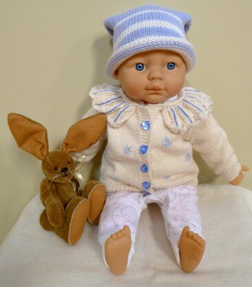 This is a lovely little cardigan for a newborn to three month baby. It features a wide ruffled collar with pale blue embroidery and Marguerite daisies embroidered in lazy daisy stitch on the body of the garment. I knitted this cardigan in Drops Baby Alpaca Silk which give a lovely light feel as it is 70% alpaca and 30% silk so has a slight sheen. The cream shade 0100 is beautiful and gives the project a beuatiful nostaglic look. Cardigans are such useful garments for little babies and this yarn is machine washable on the gentle cycle.