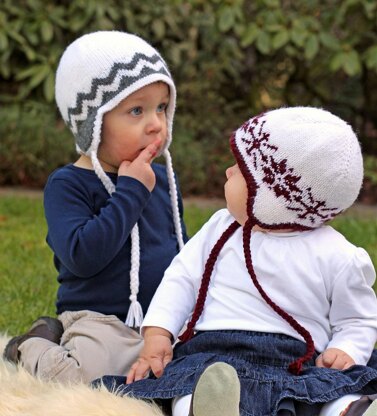 Knit this cozy ear flap hat for the little one in your life! It has doubled ear flaps for added warmth and a colorwork band for some "Nordik" flair.