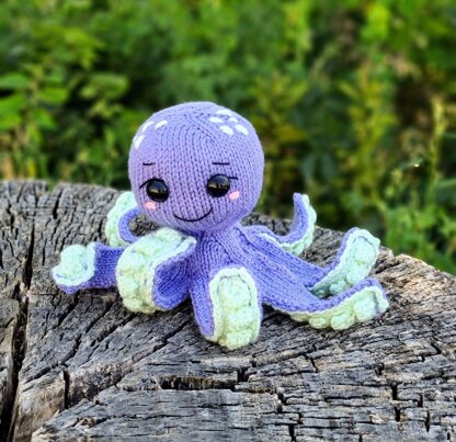 The octopus is constructed using medium weight yarn and US 5 (3.75mm) DPNs, which makes it approx. 5.5” tall. However, any size yarn and needle size could be substituted to vary it’s size.
