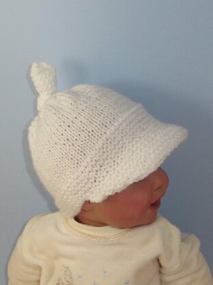 This is my Baby Peak Cap Topknot Beanie Hat knitting pattern. Its from my new Baby Topknot range of knitting patterns. This lovely peak beanie is worked flat on 2 needles but is made entirely in one piece. Due to the clever design the peak does not need stiffener so there are no laundry problems. I have chosen lovely pastel baby yarns with a sparkle which are machine washable. The knitting pattern provides full instructions and there are lots of step by step photos to help you with the simple makeup.