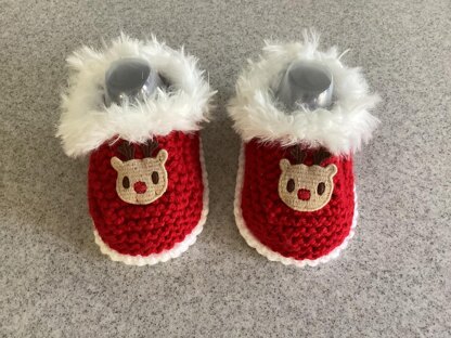 Adorable Baby Reindeer Booties - Made in One Piece on Two Needles With Back Seam. Quick And Easy.