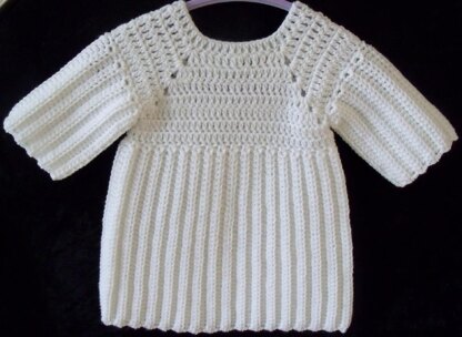 This snuggly little jumper dress can be made in a range of sizes from birth to 2 years.