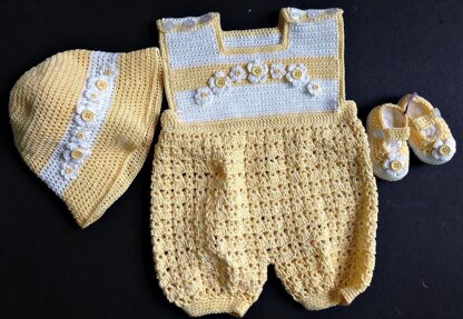 Baby girl/boy onesie-style romper set. Includes hat and Mary Jane shoes.