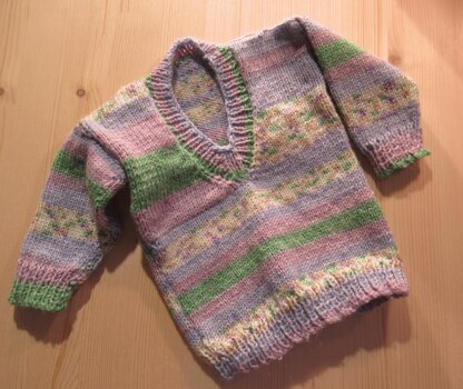 This lovely King Cole Drifter for Baby DK yarn lends itself beautifully to this cute jumper pattern. Soft and cuddly, this jumper is the ideal thing for your baby.