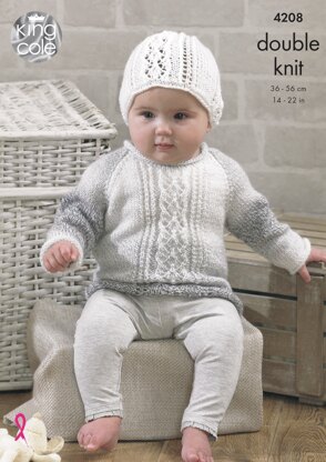 Baby Set in King Cole DK - 4208 - Downloadable PDF est un modèle de Tricot Intermédiaire par King Cole, disponible au format PDF téléchargeable et comprend des instructions en Anglais. Super amusant à réaliser, ce modèle pourrait être votre prochaine œuvre d'art !
