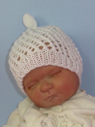 This is my Baby Simple Lace Stitch Topknot Skullcap knitting pattern. Its from my new Baby Topknot range of knitting patterns which are written to be worked flat on 2 single pointed needles OR knitted on circular needles, the choice is yours. These are very simple to make designs with stunning results and you may even learn to love circular knitting along the way. I have chosen lovely pastel baby yarns with a sparkle which are machine washable. The knitting pattern provides full instructions for 4 sizes XS (preemie and tiny baby), S (newborn - 3months), M (6-12 months) and L (1-3 years). You can choose to knit the hat flat or try circular knitting as full instructions are given for both methods.
