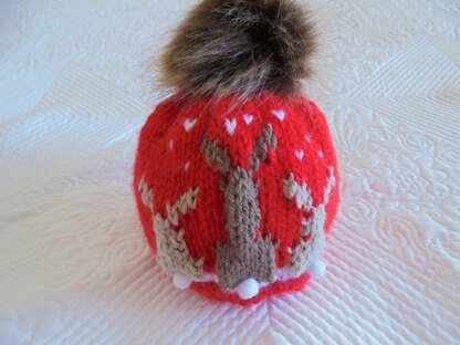 Bunnies In The Snow - Unisex Baby Hat - Made on Two Needles in One Piece This Pattern Makes Three Size 0 to 6, 6 to 12 and 12 to 18 Months.