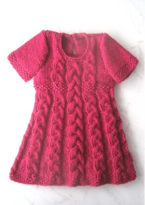 Baby Sofia is a pretty dress with cable plaits. Worked in the round to the armholes with a keyhole opening at the back to make for easy dressing.