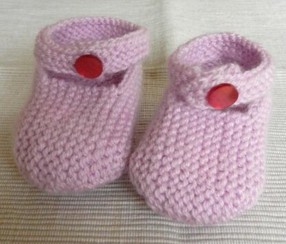 Here are some really pretty little bootees incorporating an easy garter stitch pattern. This pattern is very easy and ideal for beginners. Knitted in soft double knitting yarn, these are perfect for a new born baby. These have been knitted in pink but, of course, you can choose your own colour. Why not replace the round buttons with little hearts - a perfect gift for a Valentine baby.