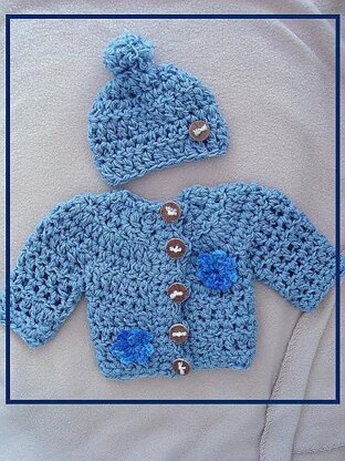 Quick and easy to make chunky style unisex cardigan sweater set for baby up to 12 months.