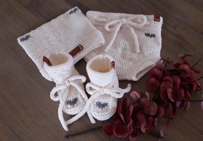 The diaper cover is worked flat at the beginning than it is joined in the round. It has a garter band on the waist with holes for a waist cord.