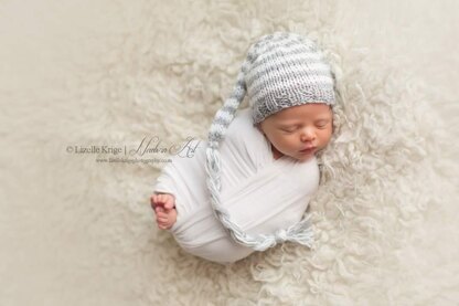 Knitting Pattern for a baby top knot hat, for you to knit yourself. Baby Santas elf hat pattern. This adorable pattern can be knit in plain colours, or stripes. Adjust the length of the 'tail' to be a simple top knot, or a long elf Santa hat. Add a pom pom or a braid. The pattern instructions are given for a hat for a newborn photography prop, through to a three year old toddler. Yarn is any Aran/ Worsted/ 10 Ply yarn. This can be acrylic or alpaca, smooth or fluffy! Knitting needles : 5mm / US size 8 The hat is knit flat, with a seam sewn afterwards. This makes it easier for a less experienced knitter.