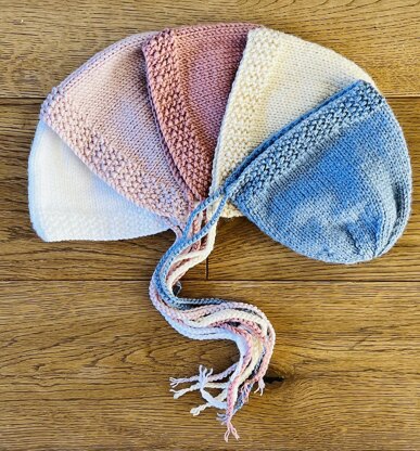 This traditional bonnet with a seed stitch border, is quick and easy to knit up. It is a modern design and is knitted in DK/8ply yarn. It is knitted flat on 4mm (US 6) single point knitting needles. You will need a 4mm crochet hook for the ties. Matching bootie pattern in my shop