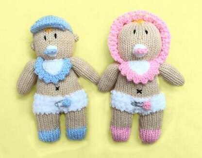 This listing is for a knitting pattern for a 18 cms Twin Baby Boy and Girl dolls.