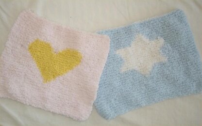 Every baby loves a little soft blanket to hold and carry around for comfort. It is great to cuddle with, sleep with and to love. This pattern comes with the option to knit a star or heart. Chart given for both options. A quick, great keepsake gift. Finished measurement approx. 12"x 14".