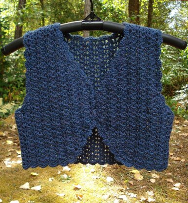 This adorable little bolero is perfect for back-to-school when the seasons start to change. It is crocheted quickly and easily from the top down, then joined at the underarm and worked in one piece for the length. It is crocheted in a simple shell stitch pattern and finished with a shell edging.
