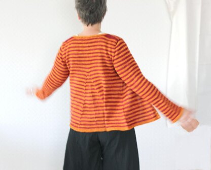 Bajads is a tailored cardigan with both waist shaping and a relaxed, swingy fit thanks to the triangle detail in the back.