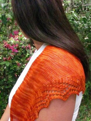 This shawlette is worked side-to-side with the knitted on edging worked as you go along. Easy to adjust for size or yardage, you can just work until half of your yarn is gone.