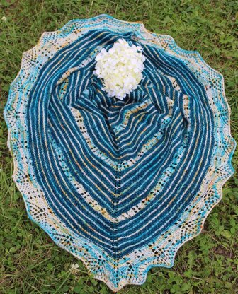I bought this yarn at Vogue Knitting Live in Manhattan 2 years ago. Unfortunately I do not see the same yarn on seller's webside, but any other natural fiber in fingering weight will work. You really can use thicker yarn as well - with the right size of needle - and you will get a larger size shaw. Gauge: not crucial to project The pattern is written out in full, but also provides charts so you can chose whichever option you prefer to follow during your knit.