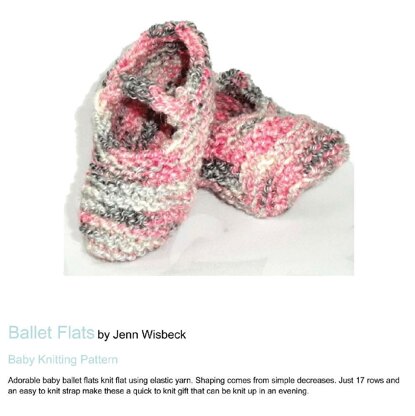 Adorable ballet flats knit flat using elastic yarn. Shaping comes from simple decreases.