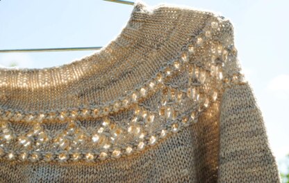 A top down sweater worked in the round, short-row shaping is used to create and asymmetrical lace yoke.