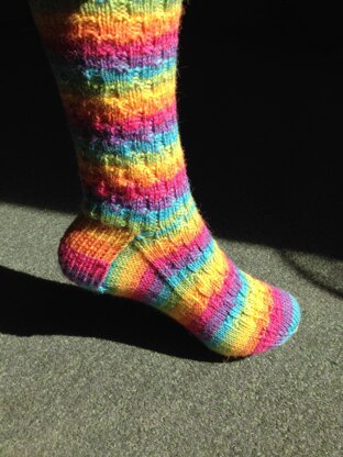 This is a knitting pattern for an mid-calf length sock. It is knitted in the round with DK yarn. The length of the foot can be altered to fit.