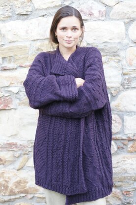 BARCELLONA - a fairly long plain coloured cosy cardigan in chunky weight wool - ideal to wrap yourself into. The cardigan is worked length wise from one sleeve acrosse the body to end with the cuff on the other sleeve. The pattern consists of 3 different textured patterns asymmetrically distributed on the cardigan and the all-over pattern is like framed inside a furrowed pattern. Worked flat on circular needles as there is quite a large number of stitches. A detailed written pattern with charts and descriptions how to change the sleeve length and to enlarge the bust width.