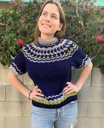 My perfect spring top has finally arrived to Ravelry! Grab your pattern today and knit up this cute turtleneck that features cable knitting, bobble stitches and stranded colorwork with a totally unique sleeve construction.