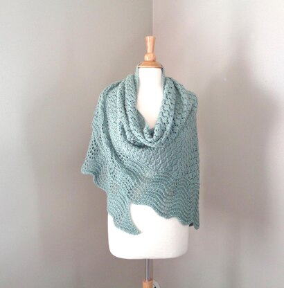 You’ll enjoy knitting this elegant shawl wrap with a lacy body and scallop border.