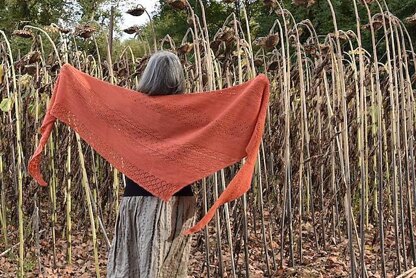 Basilan is a triangular shawl, slightly asymmetrical, worked flat from one point to the other. It is a succession of garter stitches bands and easy pattern bands finished with lace. The instructions are given row by row, and charts are added. A beginner could make most of the work, however the lace portion is slightly more advanced. An alternative easy edging is proposed.