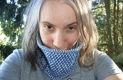When I had published the [(snowflake) basket weave beanie][1] I had already promised to publish the matching cowl soon. It's a super-easy stranded pattern, because it has only two colors throughout the whole project and the strands are so short due to the basket weave pattern, that you do not have to cross any strands over the working yarn.