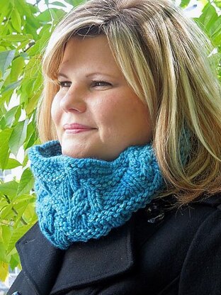 Work knits and purls and simple left and right crossing cables for this scrumptious cowl. It works up quickly in the suggested bulky yarn from Malabrigo on a size US 11 (8 mm) circular needle.
